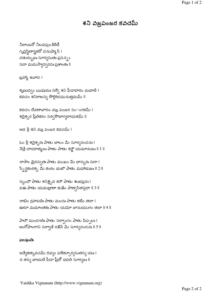 Shani Vajrapanjara Kavacham Telugu Pdf