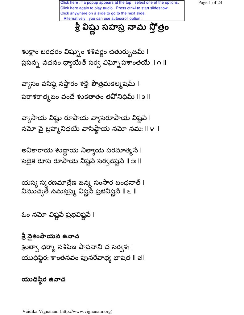 Sree Vishnu Sahasra Nama Stotram Audiobook Pdf
