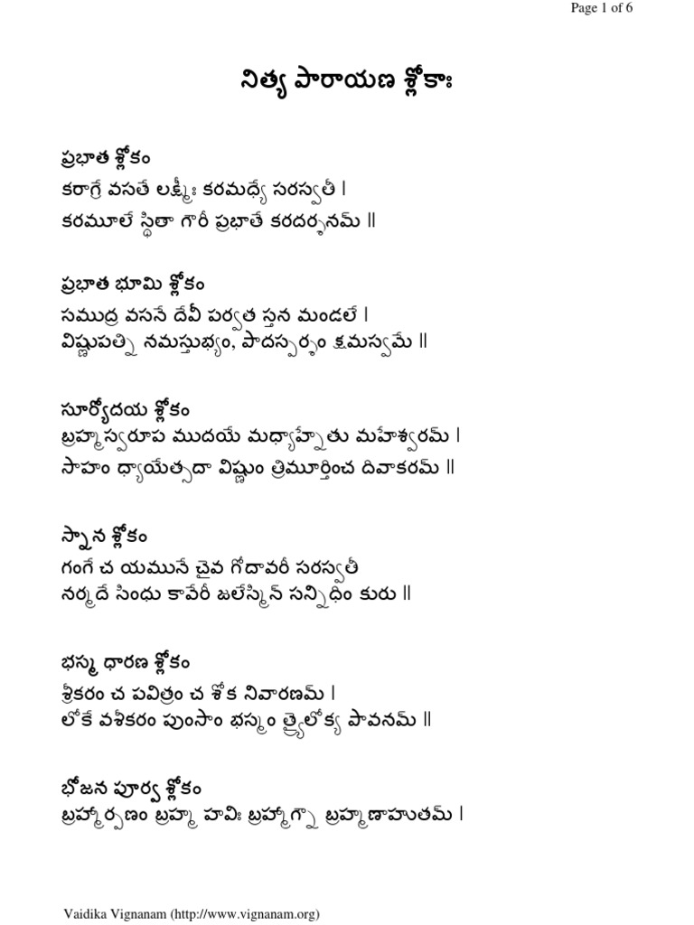 Nitya Parayana Slokas Telugu Large Pdf